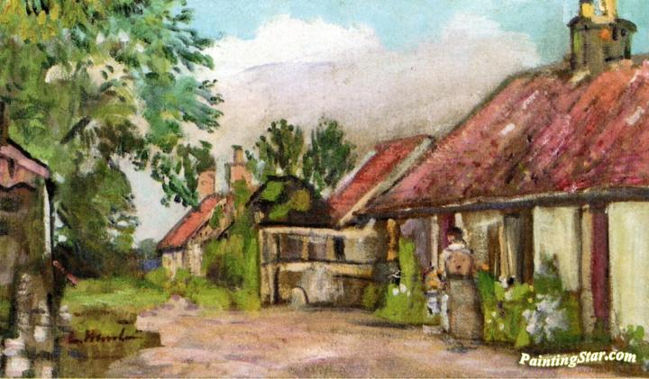 Fife Cottages, Art Painting by George Leslie Hunter