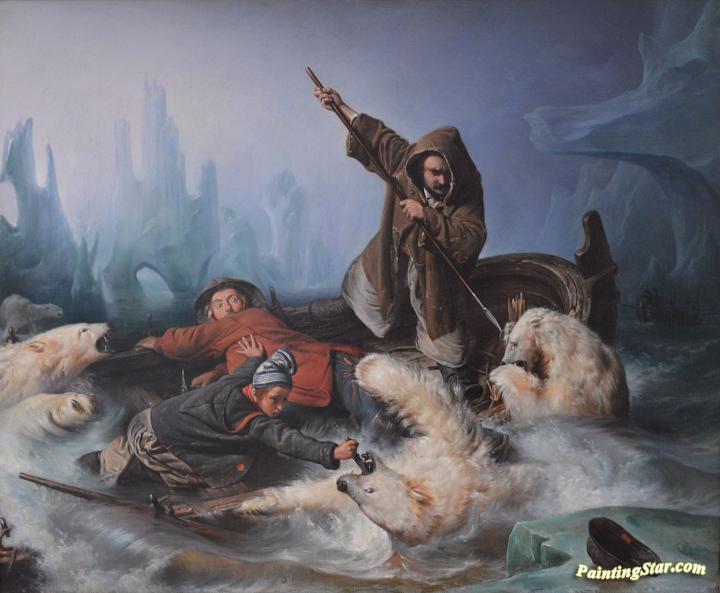 Fight With Polar Bears, Art Painting by Francois-Auguste Biard