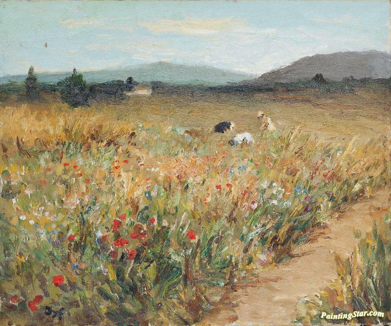 Figures Among The Flowers In Provence, Art Painting by Marcel Dyf