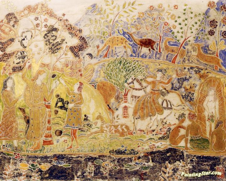 Figures And Deer, Art Painting by Charles Prendergast