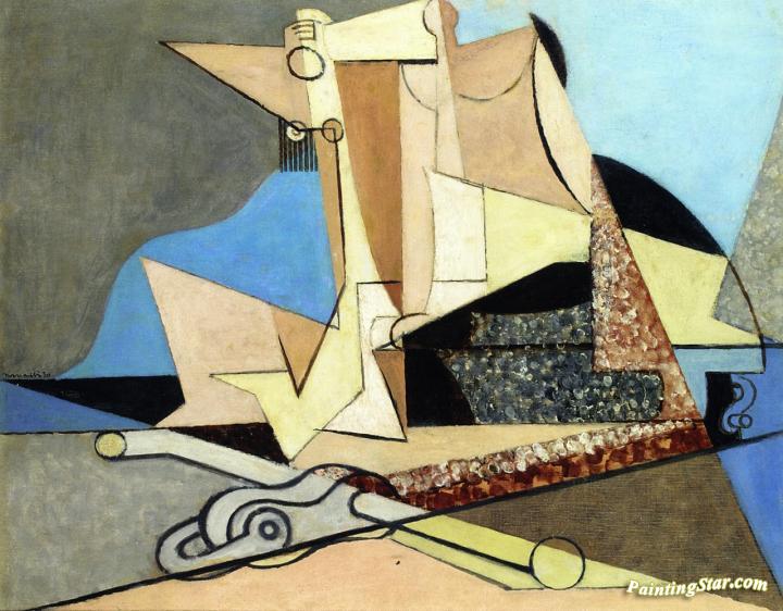 Figures and Marine Anchor, Art Painting by Louis Marcoussis