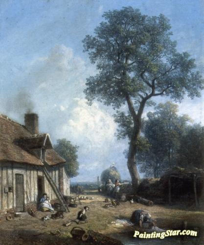 Figures In A Farmyard, Art Painting by Constant Troyon