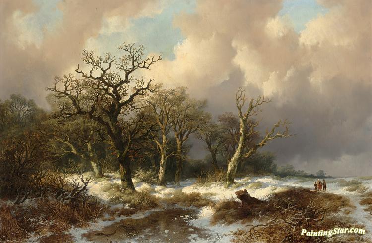 Figures In A Winter Landscape, Art Painting by Remigius Van Haanen
