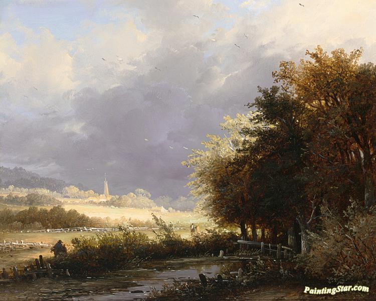 Figures On A Country Road, A Storm Approaching, Art Painting by Remigius Van Haanen