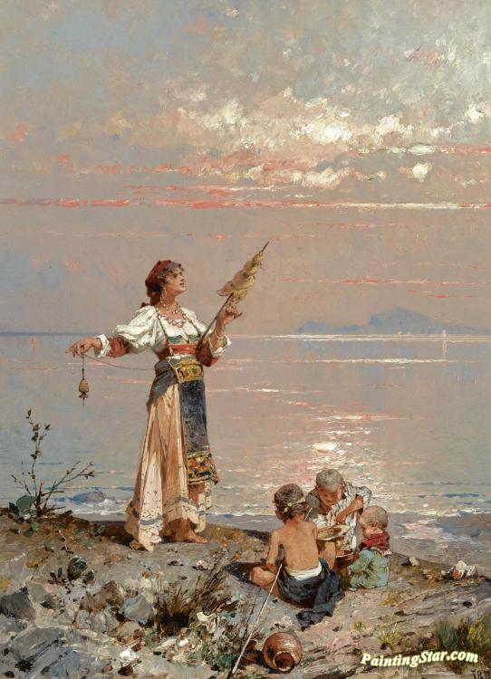 Figures On The Shore In The Bay Of Naples, Art Painting by Franz Richard Unterberger