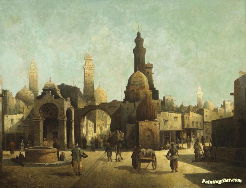Figures Outside A Egyptian Town, Art Painting by August von Siegen