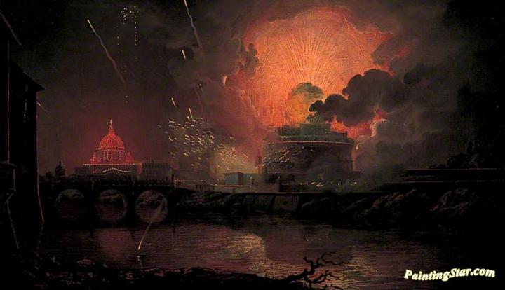 Firework Display At Castel Sant'angelo, Art Painting by Joseph Wright of Derby