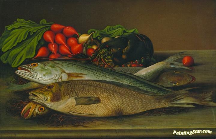 Fish, Lobster and Radishes, Art Painting by Levi Wells Prentice