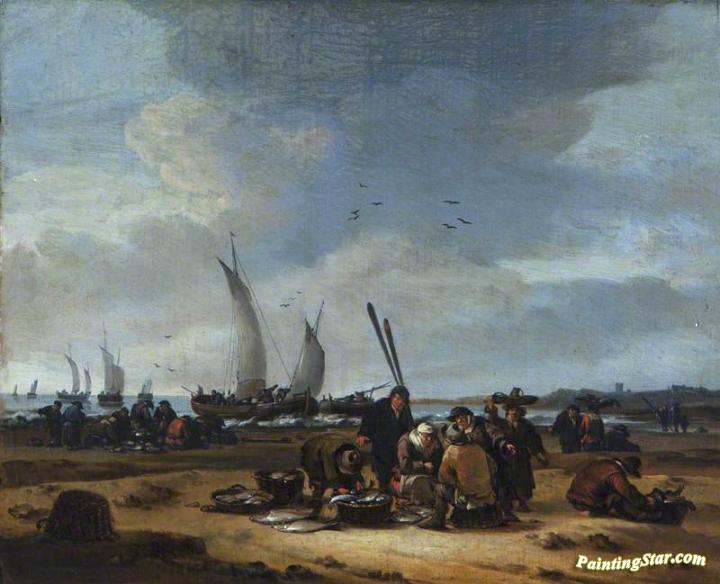 Fishermen Selling Their Catch on the Beach, Art Painting by Egbert van der Poel