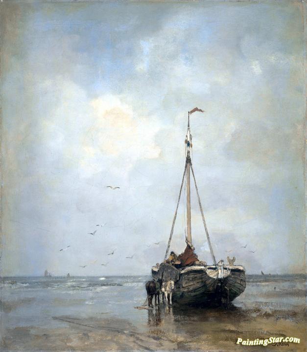 Fishersboat at the Beach of Scheveningen, Art Painting by Jacob Maris