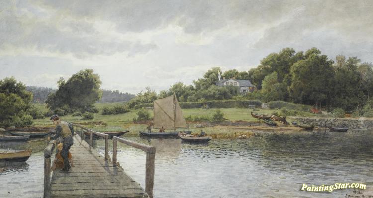 Fishing At SØlvkronen, Art Painting by Hans Fredrik Gude