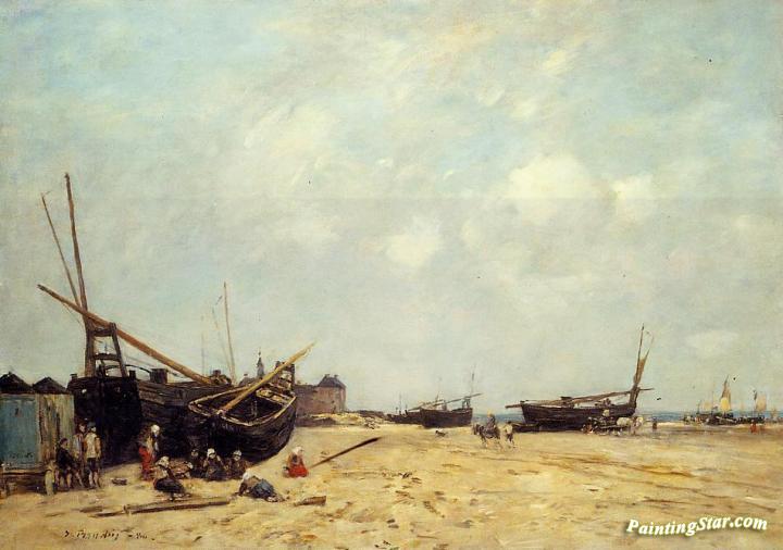 Fishing Boats Aground and at Sea, Art Painting by Eugène-Louis Boudin