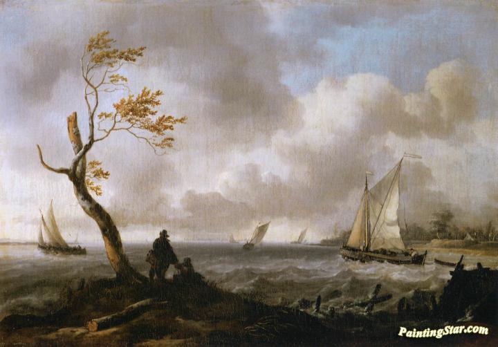 Fishing Boats and Coasting Vessel in Rough Weather, Art Painting by Ludolf Bakhuizen