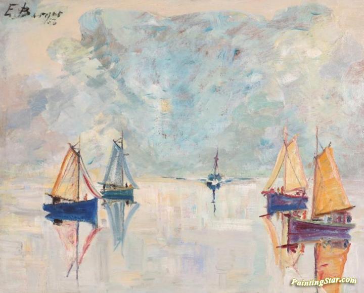 Fishing Boats (Fiskebåter), Art Painting by Einar Halvdan Berger