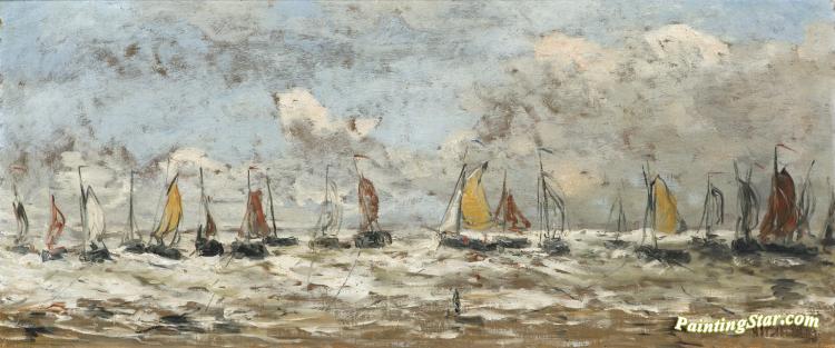 Fishing Fleet Off The Dutch Coast, Art Painting by Hendrik Willem Mesdag