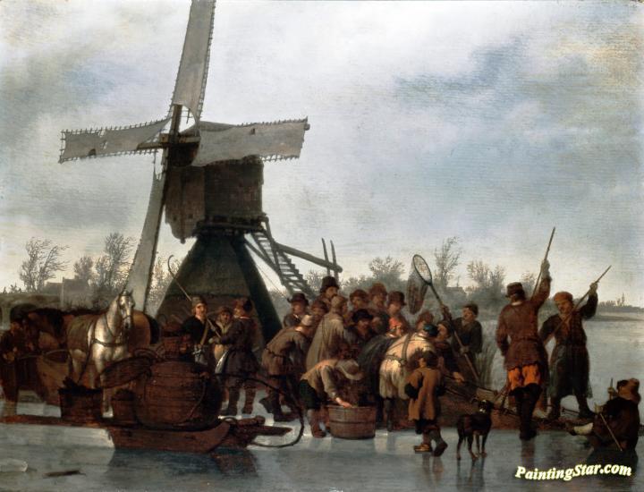 Fishing on the Ice, Art Painting by Abraham van Calraet