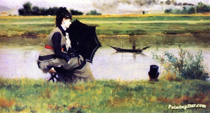 Fishing on the Seine, Art Painting by Federico Zandomeneghi