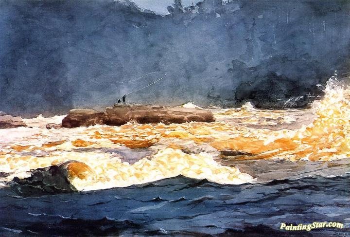 Fishing the Rapids, Saguenay, Art Painting by Winslow Homer