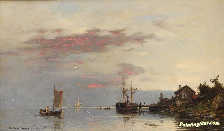 Fjord landscape with boats, Art Painting by Anton Rasmussen