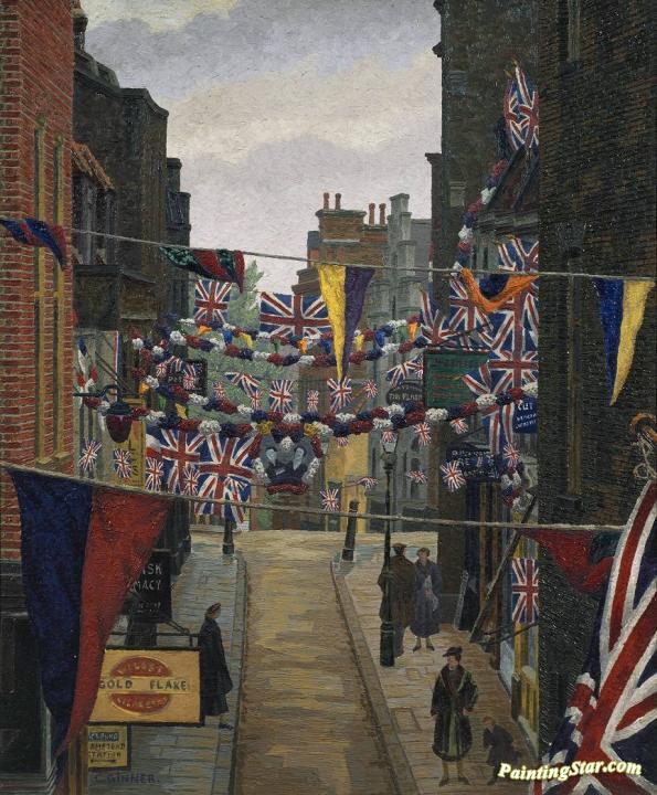 Flask Walk, Hampstead, On Coronation Day, Art Painting by Charles Ginner