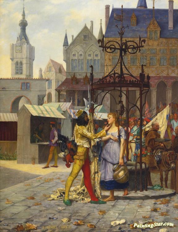 Flirtation In The Town Square, Art Painting by Adolphe Alexander Lesrel