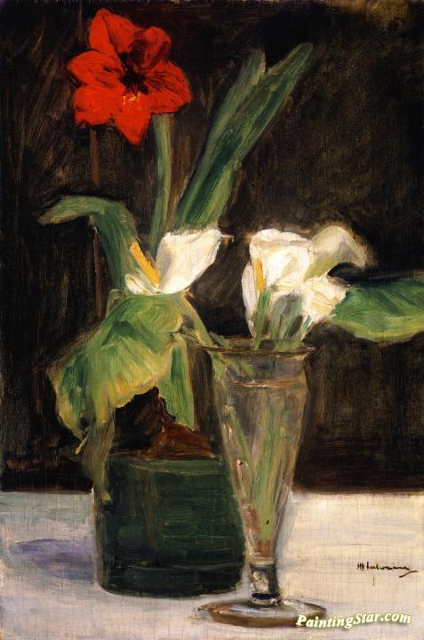 Floral Piece - Amaryllis And Calla Lilies In A Glass Vase, Art Painting by Max Liebermann