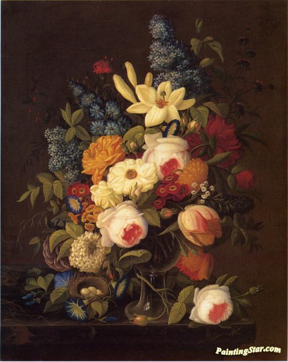 Floral Still Life with Nest of Eggs, Art Painting by Severin Roesen