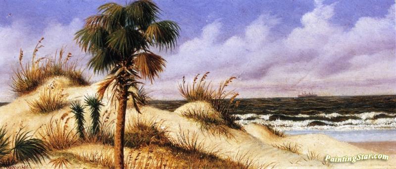 Florida Seascape With Sand Dune, Palm Tree, And Steamship, Art Painting by William Aiken Walker