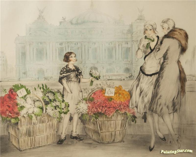 Flower Seller In Paris, Art Painting by Louis Icart