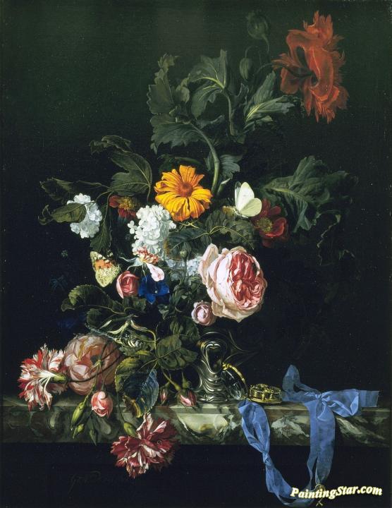Flower still life with a watch, Art Painting by Willem van Aelst