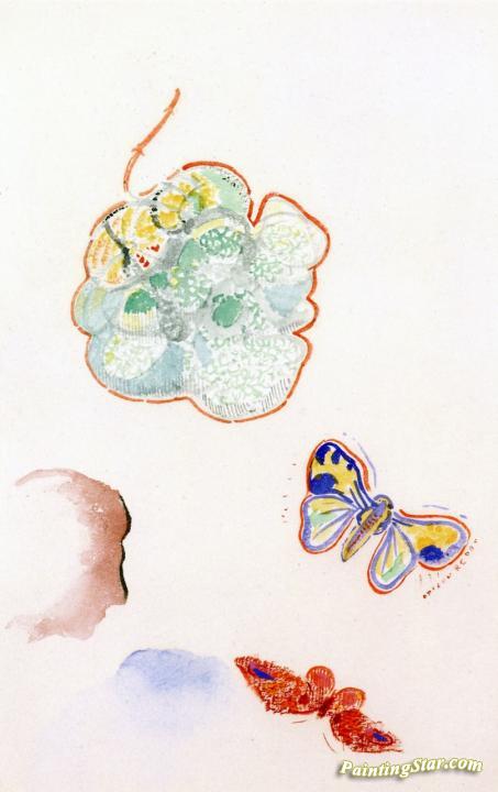 Flowers and Butterflies with Profile, Art Painting by Odilon Redon