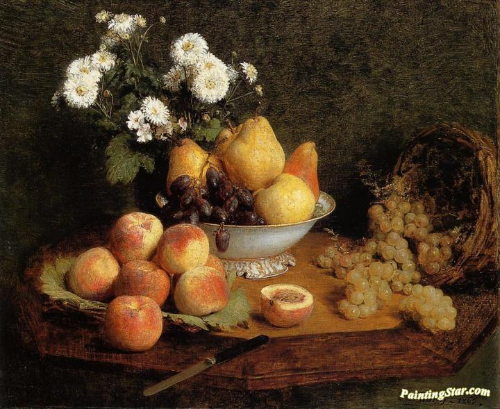 Flowers and Fruit on a Table, Art Painting by Henri Fantin-Latour