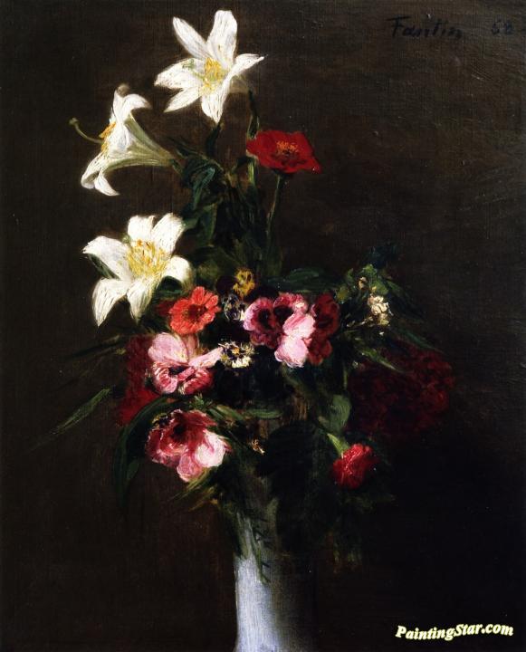Flowers in a Porcelain Vase, Art Painting by Henri Fantin-Latour