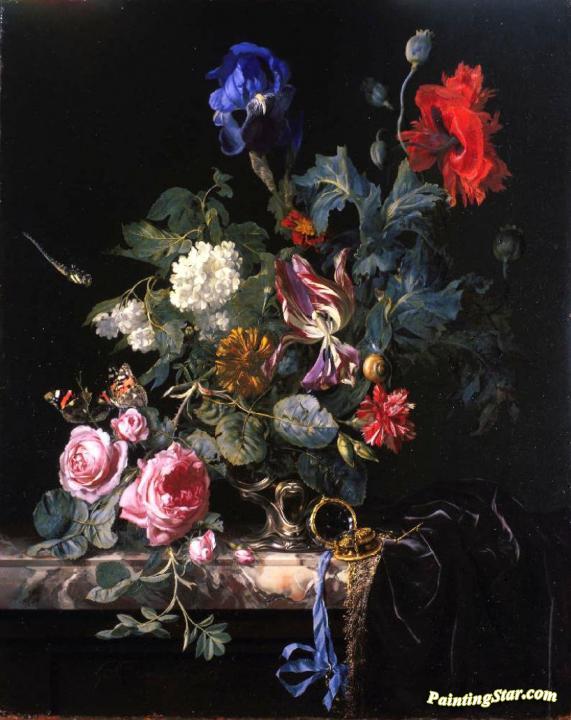 Flowers In A Silver Vase, Art Painting by Willem van Aelst