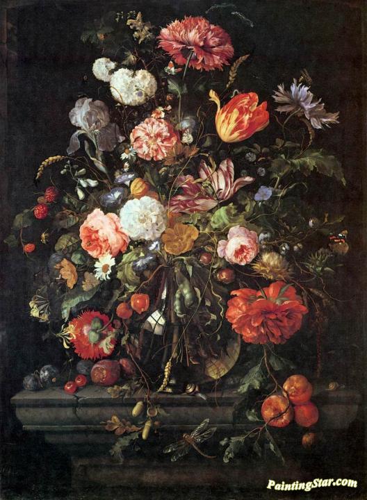 Flowers in Glass and Fruits, Art Painting by Jan Davidsz De Heem