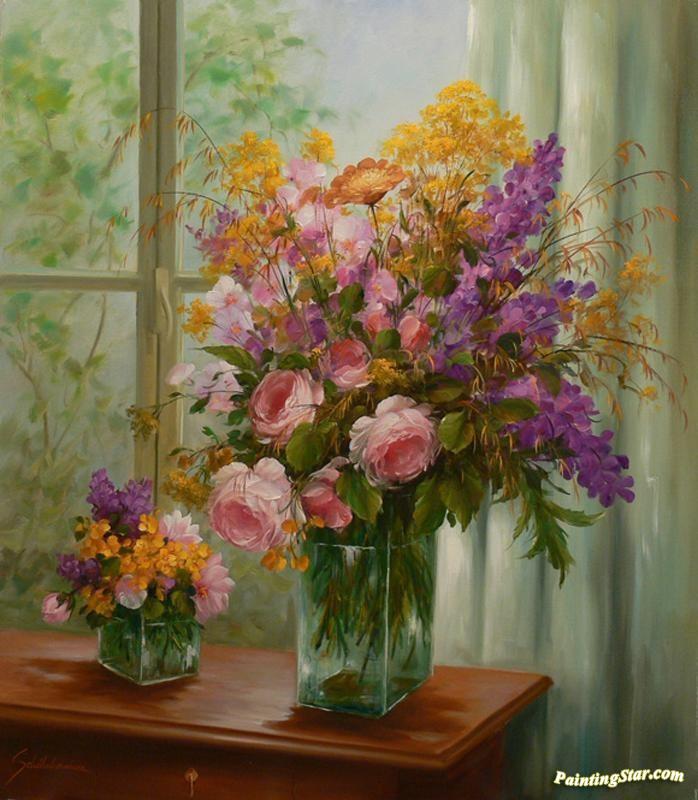 Flowers On The Window, Art Painting by Heinz Scholnhammer