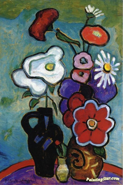 Flowers With White Rose, Art Painting by Gabriele Münter