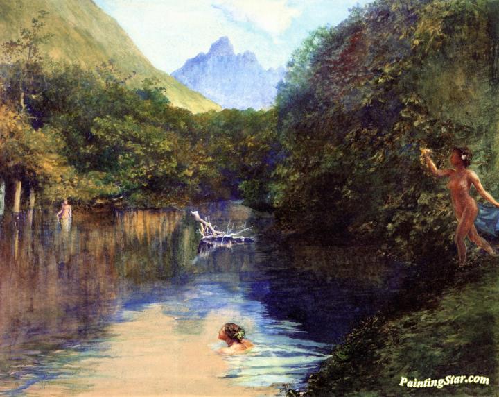Ford at the Upper End of the Vai-te-piha (Tautira River), Tahiti, 1891, Art Painting by John La Farge