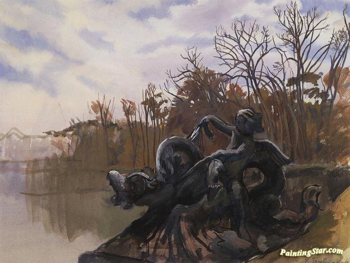 Fountain in the Park of Versailles, Art Painting by Zinaida Serebriakova