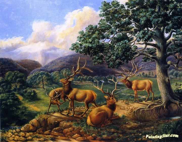 Four Elk, Art Painting by Titian Ramsey Peale II