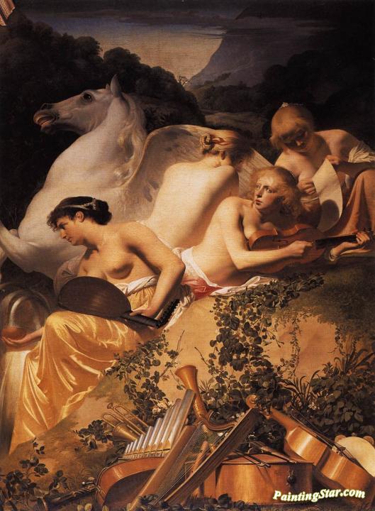 Four Muses and Pegasus on Parnassus, Art Painting by Caesar van Everdingen