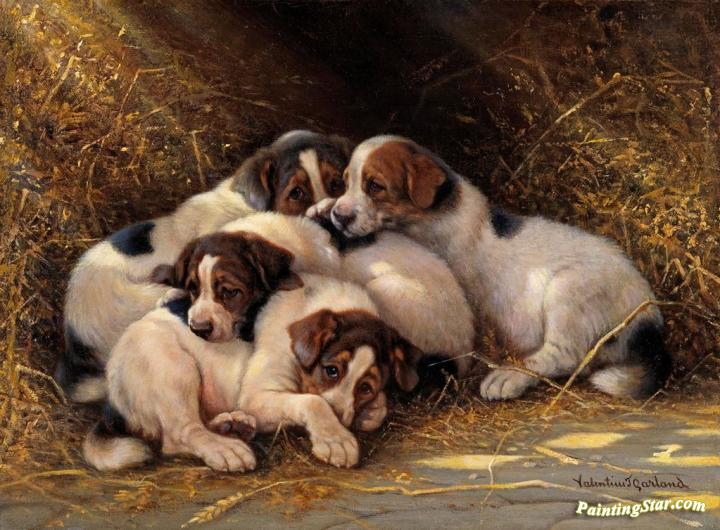 Four Puppies in a Haystack, Art Painting by Valentine Thomas Garland