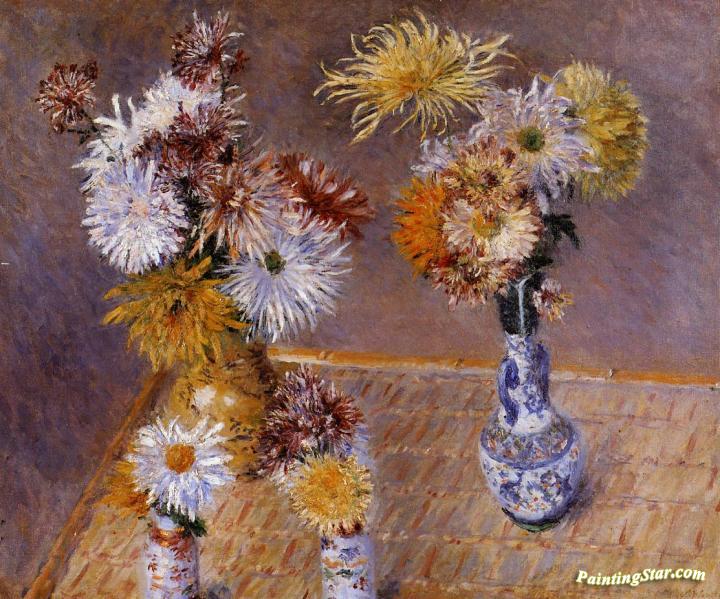 Four Vases of Chrysanthemums, Art Painting by Gustave Caillebotte