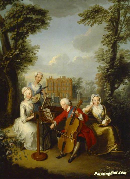 Frederick Louis, Prince of Wales, Accompanied by His Sisters, Making Music at Kew, Art Painting by Philippe Mercier