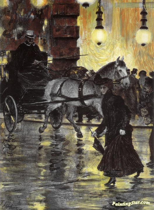 Frederick street on a rainy night, Art Painting by Franz Skarbina