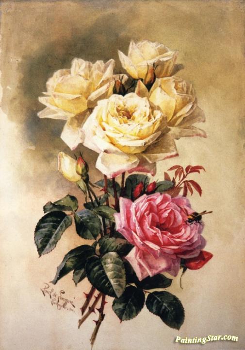 French Bridal Roses, Art Painting by Paul De Longpre