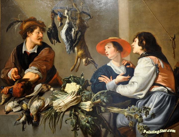 French:Marchands de gibiers et de légumes, Art Painting by Theodoor Rombouts