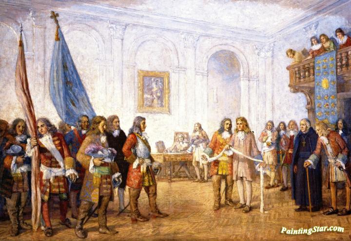 Frontenac Receiving Sir William Philip's Envoy, Art Painting by William Brymner