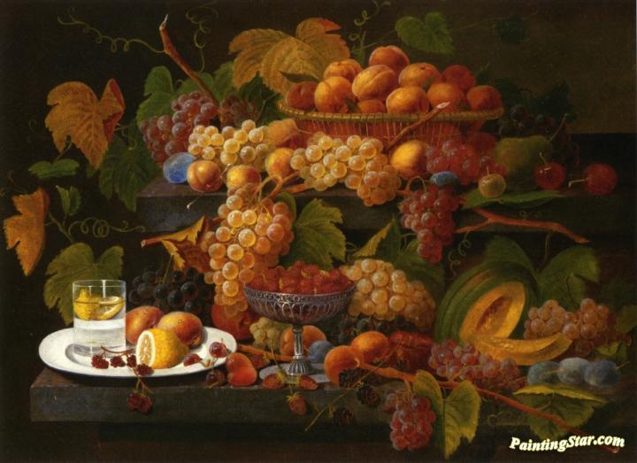 Fruit and Lemon Water, Art Painting by Severin Roesen