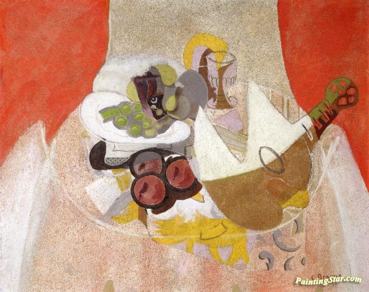Fruit, Glass And Mandolin, Art Painting by Georges Braque